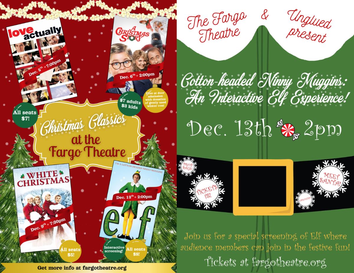 What’s playing at the Fargo Theatre? Upcoming Christmas classics include Love Actually on 12/5, A Christmas Story on 12/6, White Christmas on 12/9 and Elf on 12/13.
